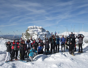 Sol, nieve y amigos con ganas de Aventura, éxito garantizado. Y así fue, la nieve tardó en llegar pero lo hizo a tiempo y la treintena de afortunados que nos calzamos las raquetas de nieve, disfrutamos de un espectacular día en la sierra.